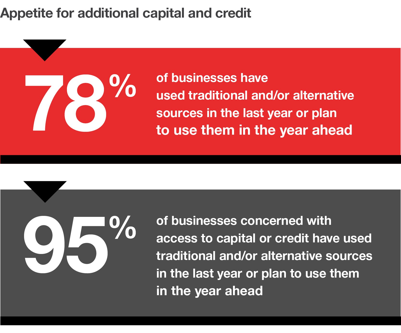95% of businesses concerned with access to capital or credit have used traditional an/or alternative sources in the last year or plan to use them in the year ahead