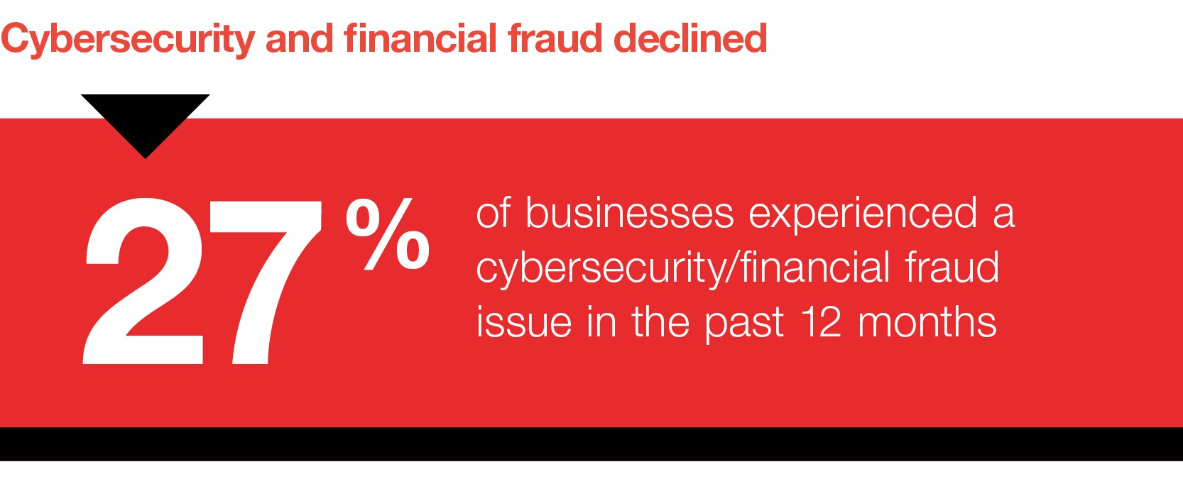27% of businesses experienced a cybersecurity/financial fraud issue in the past 12 month
