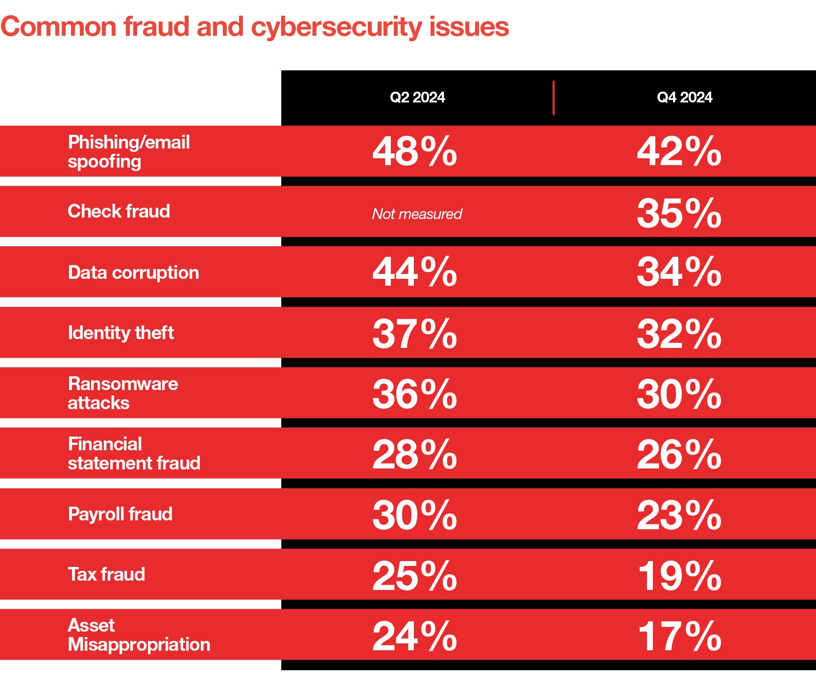 Businesses that continue to rely on checks, including those that use them infrequently, are vulnerable to the perpetual threat of check fraud — which affected more than one-third of respondents who reported a cybersecurity or fraud issue in 2024.