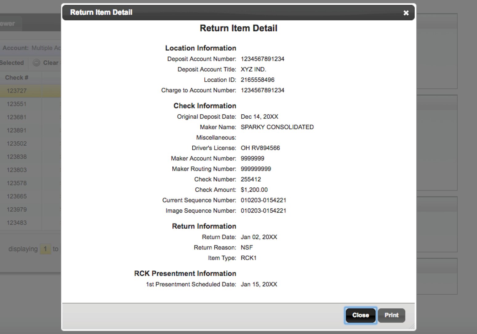 Deposit ticket images displayed in the Image Viewer tab can display electronically generated tickets (KeyCapture) or scans of hand written deposit tickets (counter deposits).