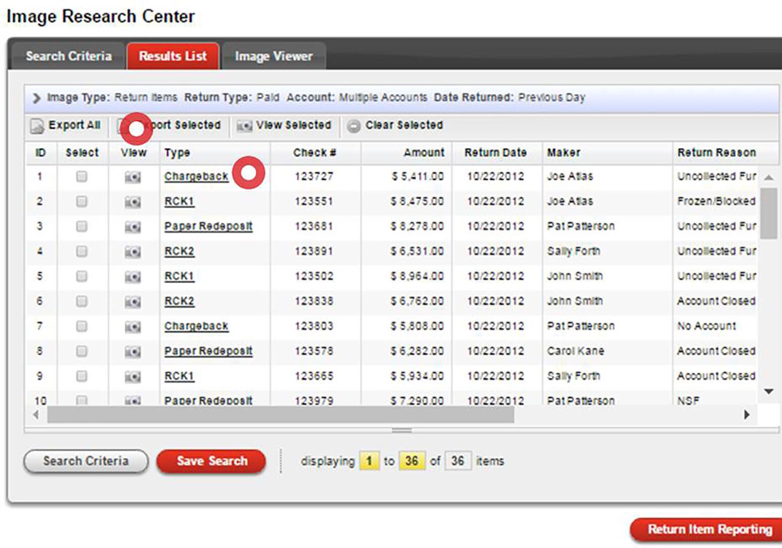 If you search for Adjustment Advices, the Results List tab allows you to view adjustments made to your account. You can view a PDF of the advice and an image of any related checks.