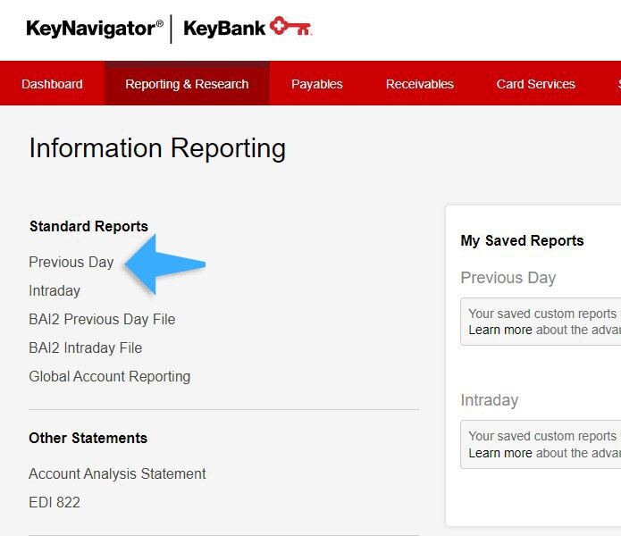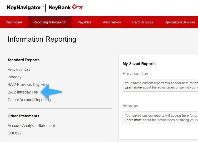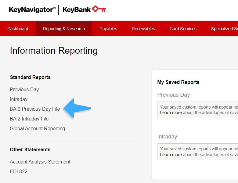 The previous day summary and detail information can be downloaded into a BAI2 format for exporting.