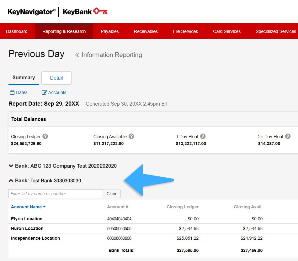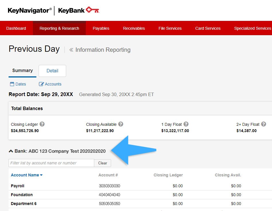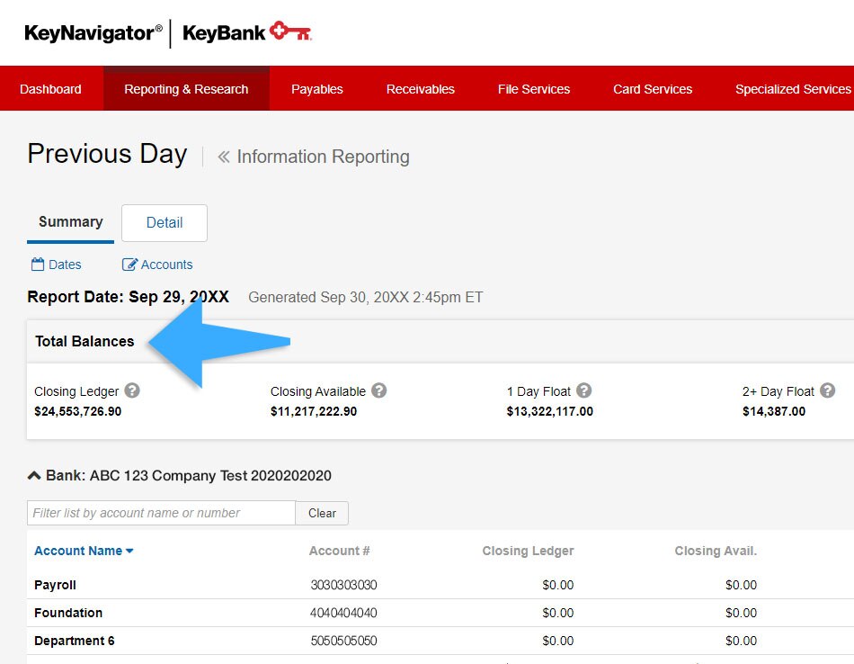 Previous day information includes all posted transactions from the previous day's activity, such as deposit activity, paid checks, incoming ACH debits and credits, incoming wires, and ACH and wire transactions that you originate.