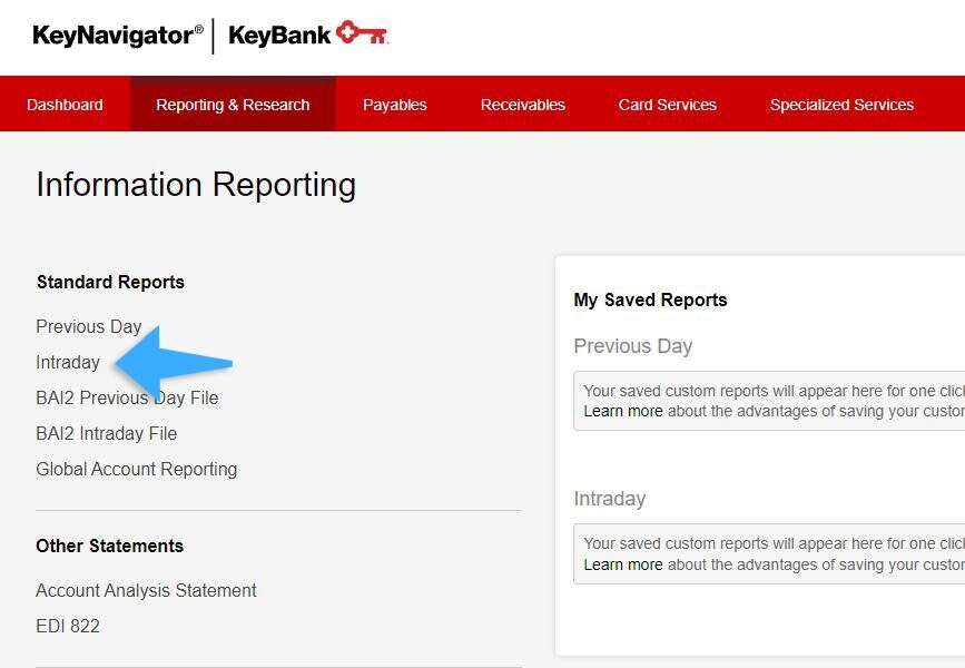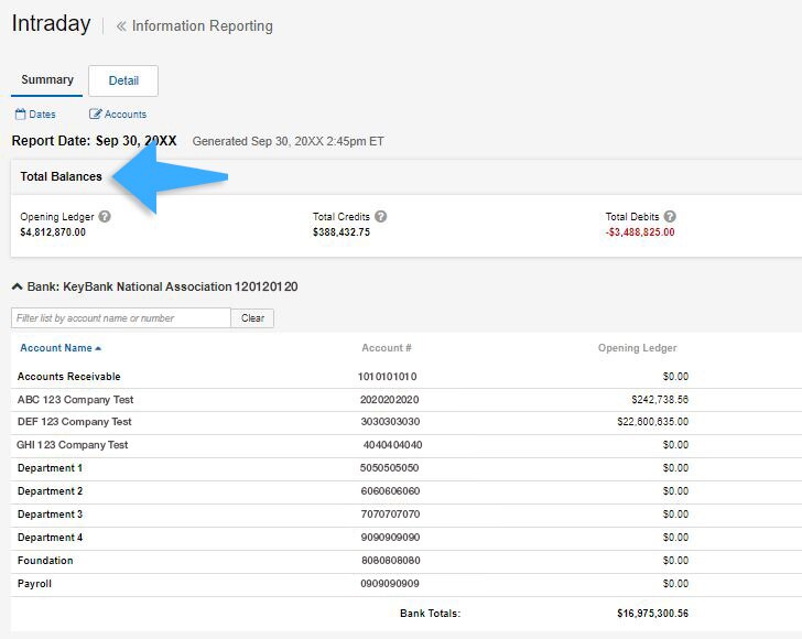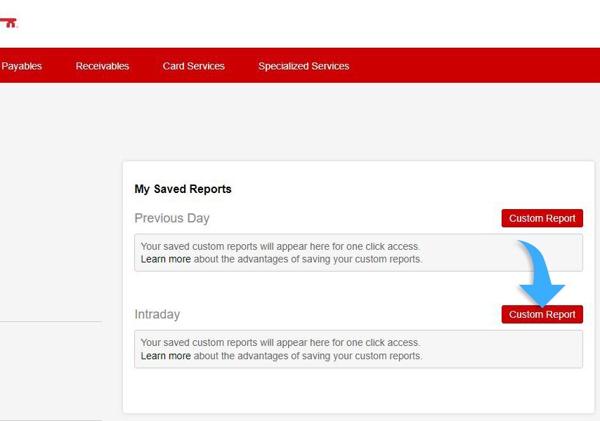 The intraday report can be customized and saved by using balance, transaction, and date filters. Please review the Custom Reports Overview Tour for additional details.