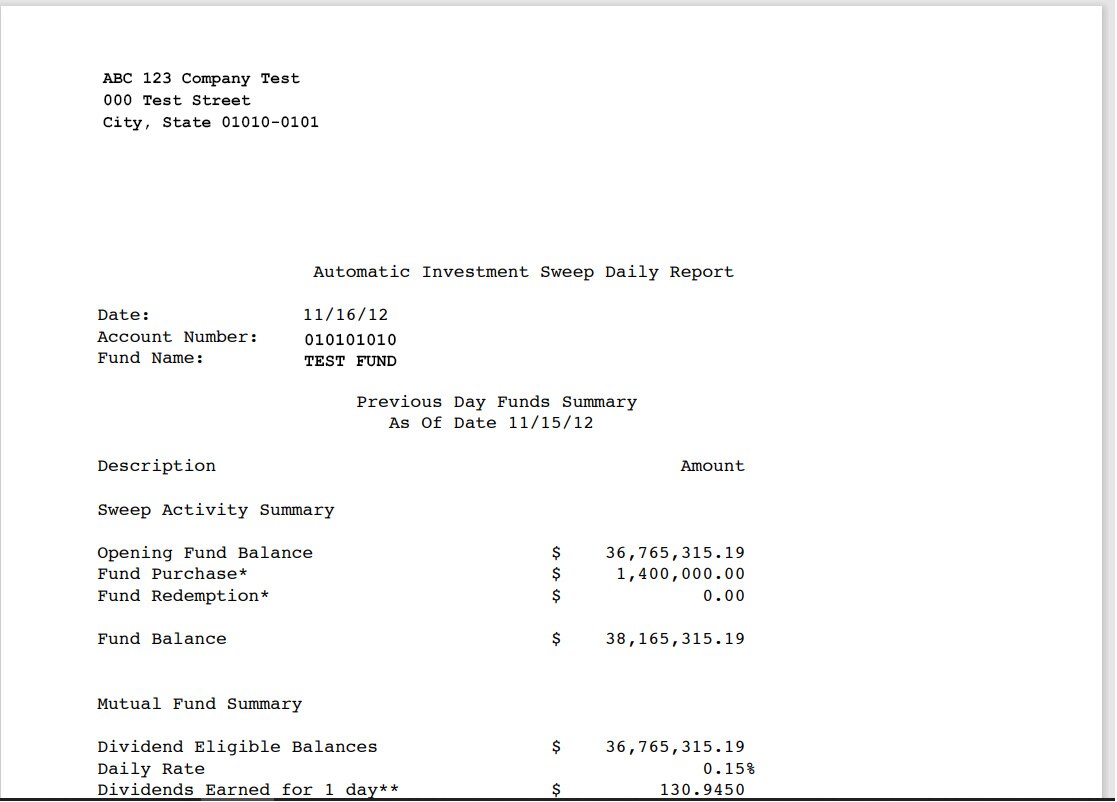 The Information Reporting module provides a wide variety of balance and transaction reports to help you manage daily cash positioning needs. The module also provides reports for all of the various cash management services your company may be using.