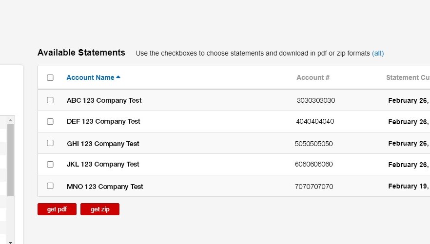 You can download a single month or multiple months of statements for a single account or multiple accounts by using the Available Statements list.