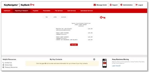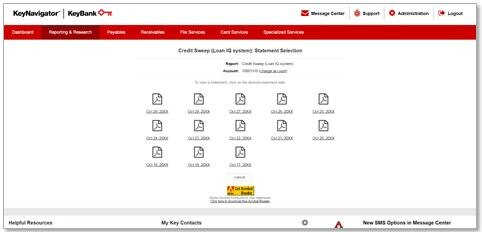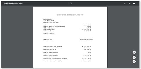- Daily Credit Sweep Reports display the previous day loan balance before sweeping, the amount of sweep paydown or sweep advance transfers, and the previous day closing loan balance.