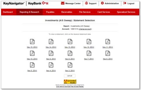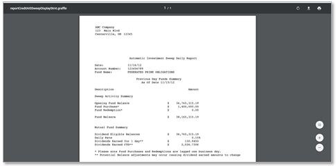 - Investments (AIS Sweep) Report List - Automatic Investment Sweep Reports are displayed in descending date order. Select one to view it in PDF format.