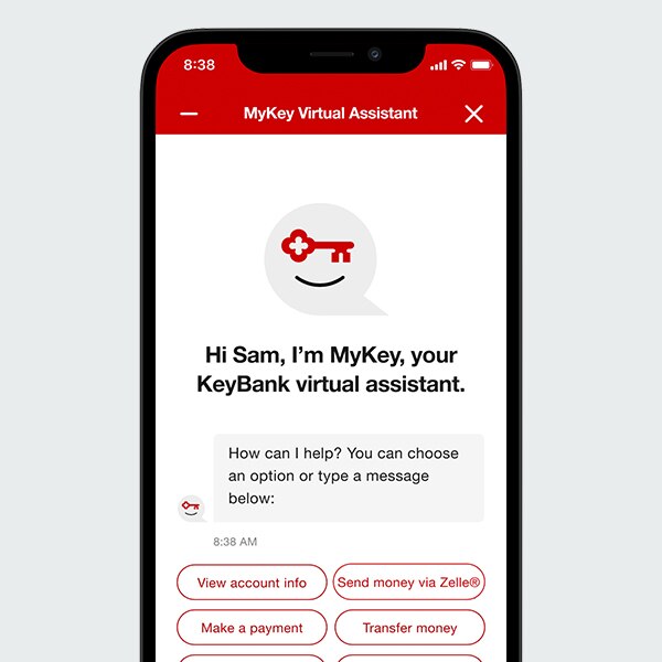 - [MyKey] How can I help you today? Oops, sorry. I should introduce myself first. Hi, I'm MyKey, KeyBank's virtual assistant. It's kind of like Mikey, only it's MyKey. Anyway, I'm here to help, like, always here, anytime, anywhere. Just open the Key mobile app and, boom, there I am. I'm here to make managing your financial life a breeze and to help you handle whatever everyday banking needs you have. Just ask me. Need to check transactions or view your last monthly statement? Coming right up. Lost your debit card? Oh, that's a stinker. Let me lock it for you and get you a new one. Just got pizza with your friends and have to pay them back? You're all set. I'm here to help you stay on top of all your KeyBank accounts, checking, savings, credit cards, and mortgage. And if I can't help you with what you need, which would be a serious bummer, I'll connect you with someone who can. And don't worry, the person I connect you with will already know who you are and what you're looking for. Also, I'm really big on learning new things, so stick with me because I'm gonna keep getting better. And that's it. I'm MyKey, and that's my story. Now, how can I help you today?